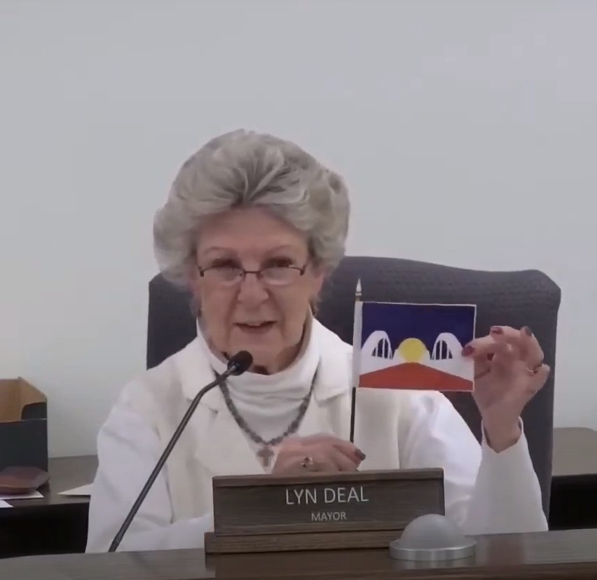 Hello, my name is August Nielsen, and I Designed the flag Lyn Deal mentioned in a city council meeting, I also want to make clear that my design is license free, anyone can and should use it as they see fit. My goal is to have a flag for the people of Fort Morgan to identify with as I see the Rainbow Bridge as a symbol of not only resilience but acceptance and a path to a better future.